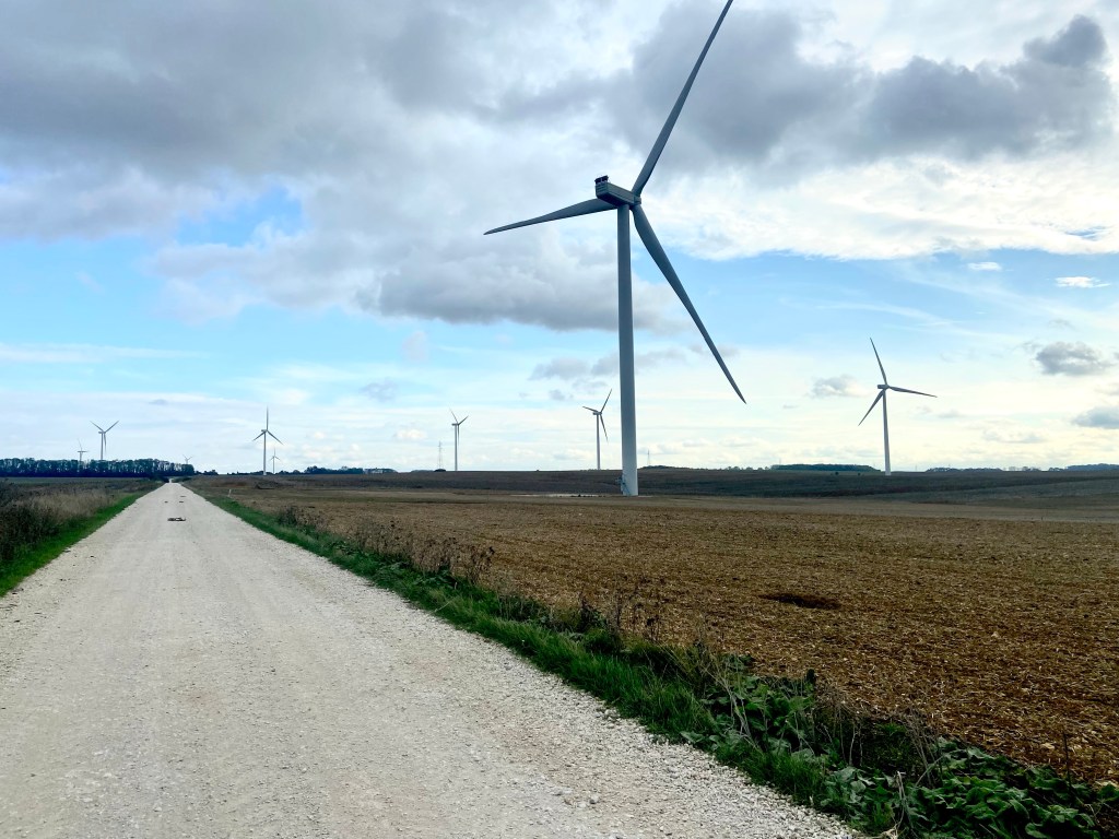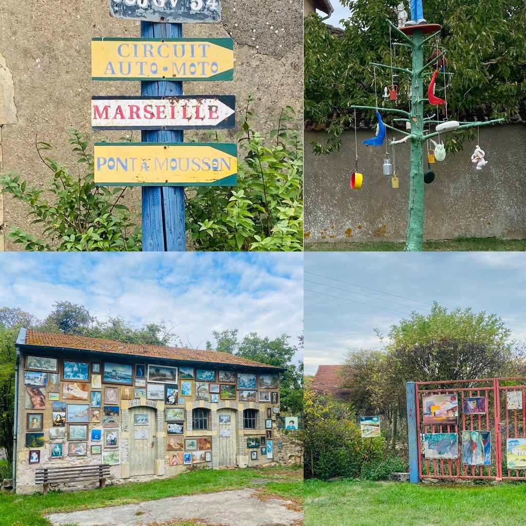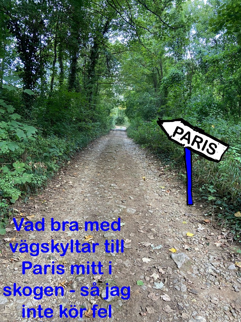 HĂ€r hade de glömt sĂ€tta upp en skylt Ă„t vilket hĂ„ll över Ă„kern som Paris ligger – men jag chansade rĂ€ttâŠ.LĂ€mnade min senaste Ă€ngla-vĂ€n och bunkrade upp frĂ„n Tabac-affĂ€ren som visade sig ha baguette, choklad, camembert, mjölk och croissanter – sĂ„ dĂ„ klarar jag mig genom nationalparker, berg, skogar o andra platser ute i ingenstans .KĂ€nns alltid lika skönt nĂ€r vĂ€garna gĂ„r bredvid hĂ€sthagar eller nĂ€stintill genom en ladugĂ„rd .Dagens lunch bredvid nĂ„gra nyfikna hĂ€star. sallad idag ocksĂ„ till gröten đCyklade genom en by som var alldeles full av mĂ„lningar, installationer, skulpturer o roliga skyltar. PĂ„ varenda gĂ„rd och hus. JĂ€ttefint o roligt ! LĂ„ng lĂ„ng grusvĂ€g genom vindkraftsparken hĂ€r, hallĂ„ Andreas hit kan du Ă„ka ! De dĂ€r pytteprickarna Ă€r kossor, sĂ„ dĂ„ kan man förstĂ„ jag Ă€r högt uppe. Totalt 1066 meter uppĂ„t totalt idag och 10.7 mil cyklande âŠ.